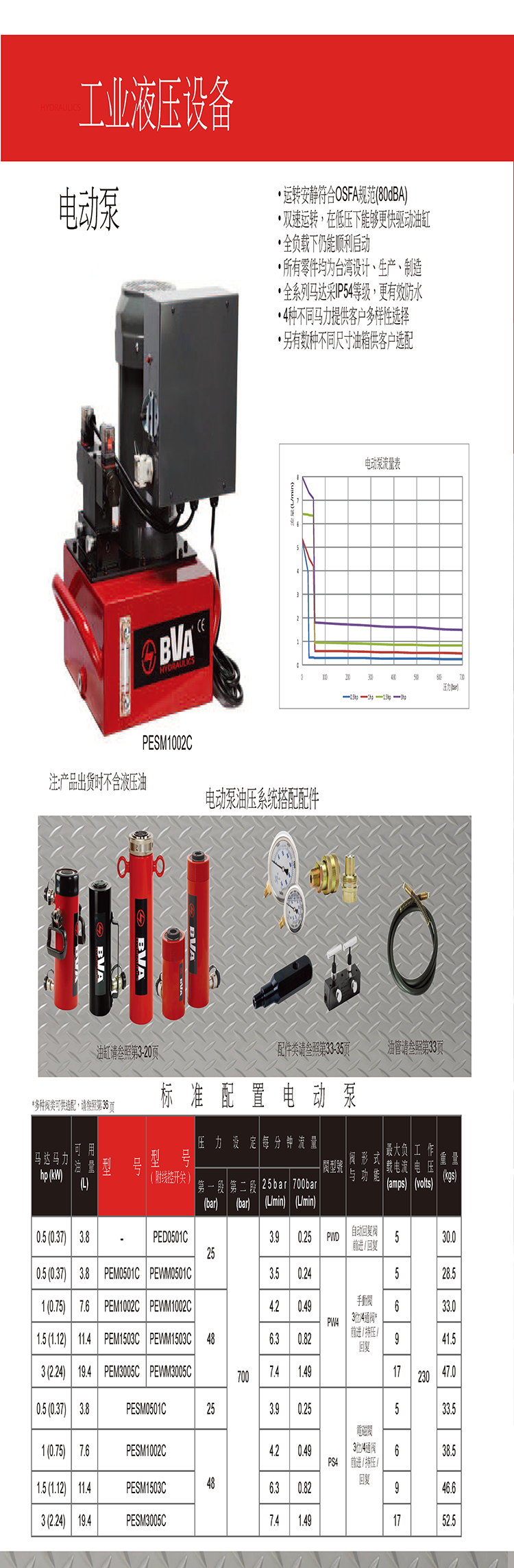 BVA泵类:SR05~SR10 BVA液压扩张器,BVA法兰分离器,PA1500~ PA7550 BVA金属油箱气动泵,PA600/PA600H BVA全方向操作式气动泵,PA1500M BVA双作用缸用气泵,PA1500L/PA3801L BVA线控式气动泵,P350~P1000 BVA双速度铝制手动泵,P1201~P8701 BVA双速金属油箱手动泵,P2301M~P8701M BVA双作用缸手动泵,P240L BVA低压手动泵,PEM0501C~PESM3005C BVA电动泵,PARD1701~PAR4003 BVA旋转式泵,PG5505 BVAHONDA引擎汽油泵。