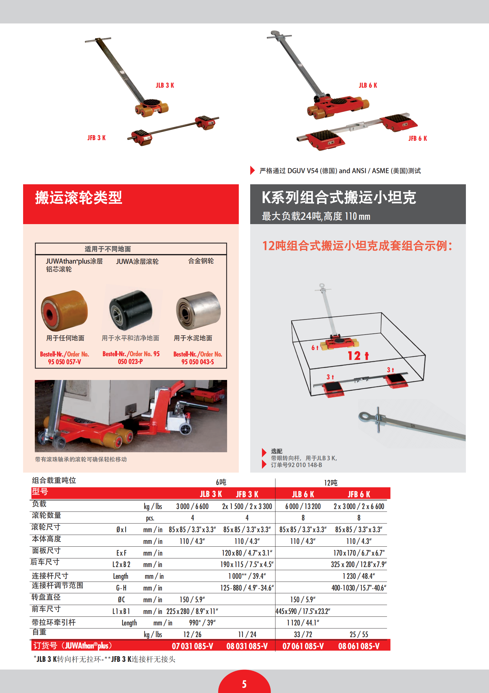 【产品规格】JLB3K JFB3K德国JUNG组合式搬运小坦克,载荷6吨